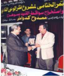 السيد اللواء محافظ سوهاج يسلم الدرع لرئيس برنامج الوكالة الكندية السيد ريك ماكتاجرت وذلك بالمؤتمر الختامي للمشروع